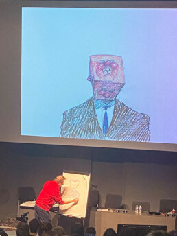 Bill Plympton était à Angoulême le 22 octobre 2025 pour une Master Class exceptionnelle. Après la projection de son film « Duel à Monte Carlo Del Norte« , la veille au soir au cinéma de la Cité internationale de la bande dessinée et de l’image, Bill Plympton, accompagné par son distributeur Manuel Attali d’ED Distribution, est venu présenter aux étudiants de l’EMCA, de l‘école Emile Cohl et du Cnam-Enjmin son parcours, ses films et expliquer son choix d’indépendance et sa méthode de travail.