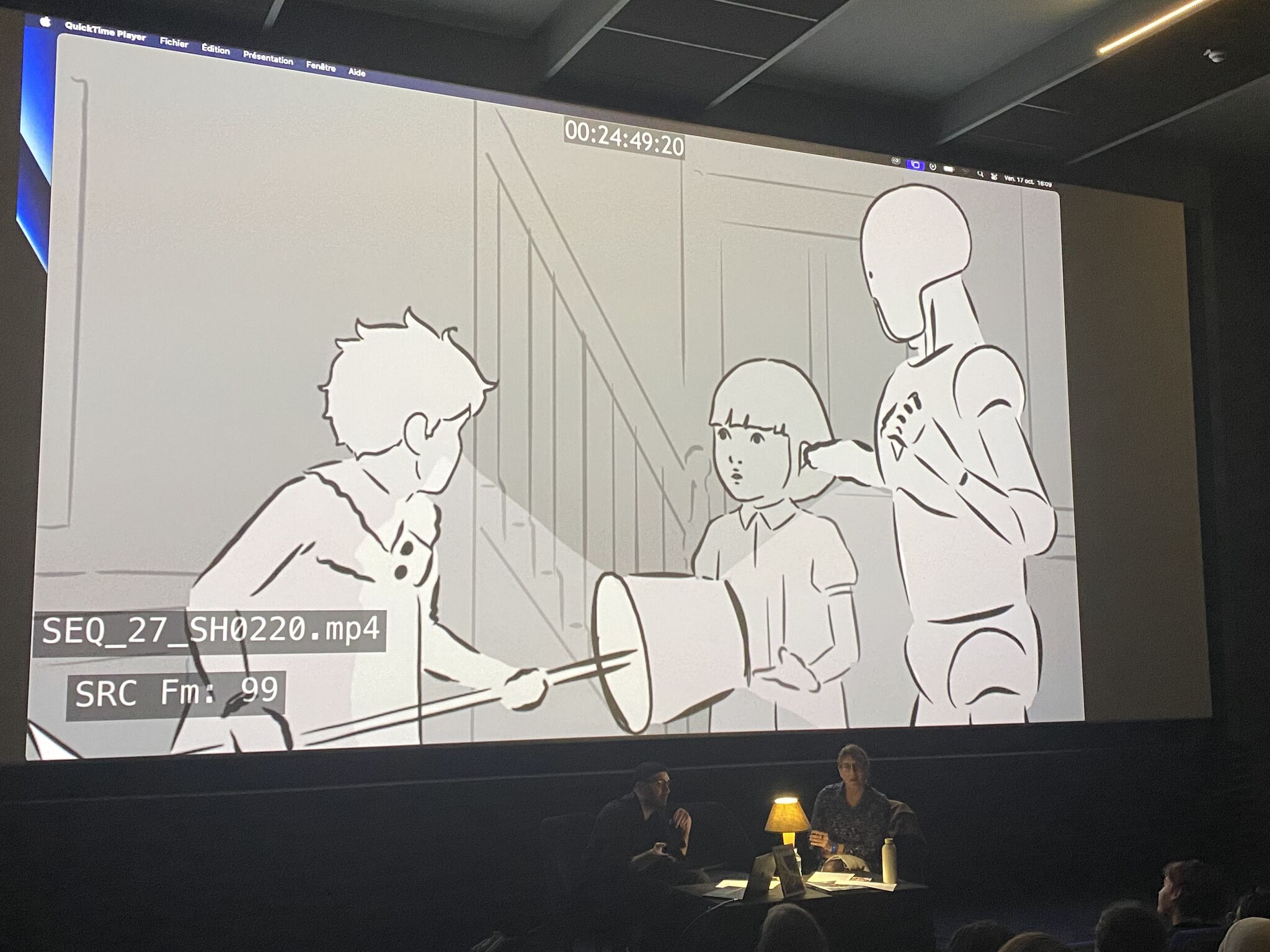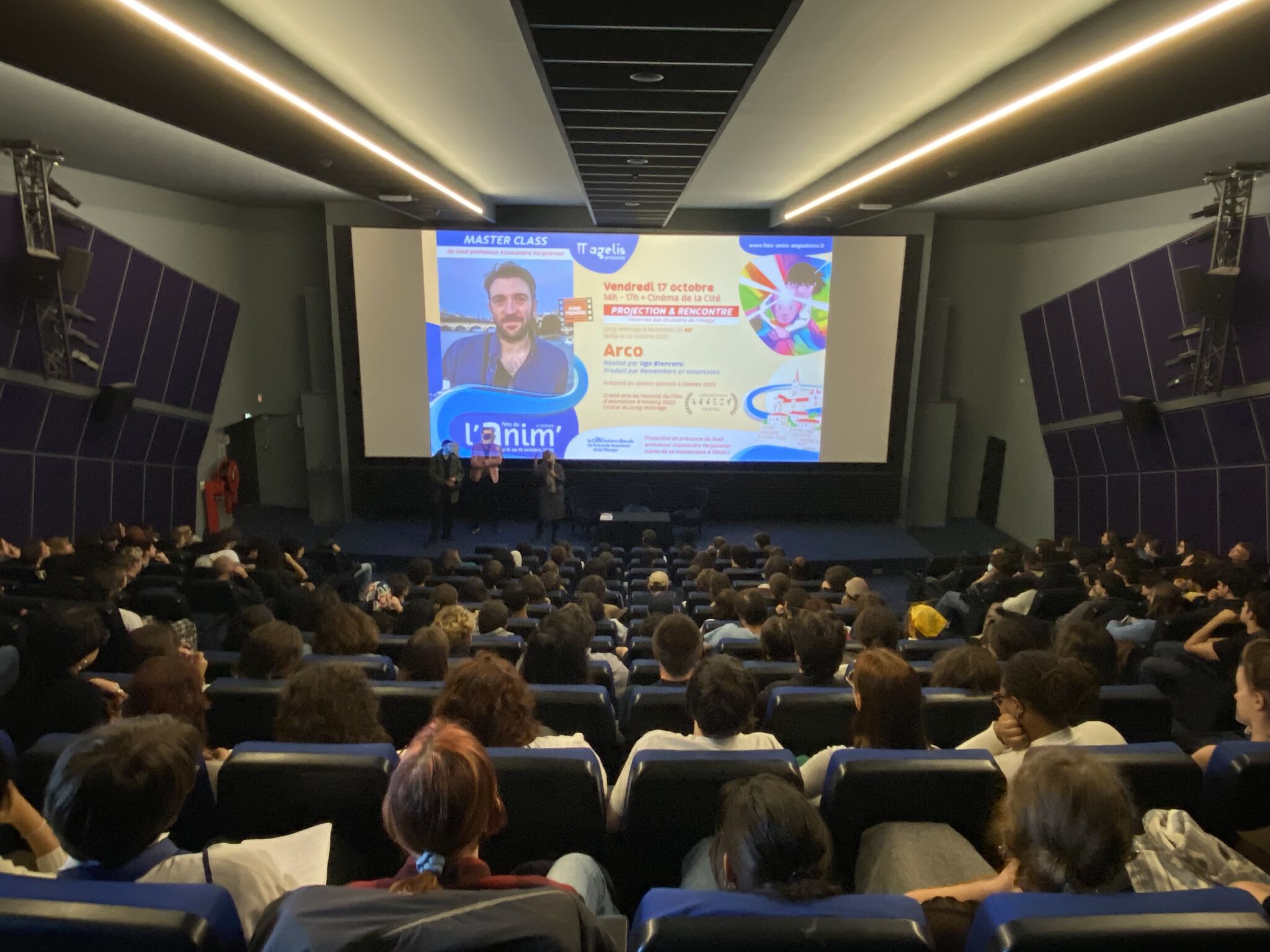 Après la projection devant une salle comble d’étudiant.e.s des écoles de l’image d’Angoulême (EMCA, LISA, Ecole Emile Cohl, L’Atelier), Alessandro Vergonnier a partagé avec beaucoup de générosité son expérience : ses études, ses premiers contrats, ses doutes, son travail sur Arco, ses réussites, ses projets. Une conférence qui a ravi tout.e.s les étudiant.e.s !